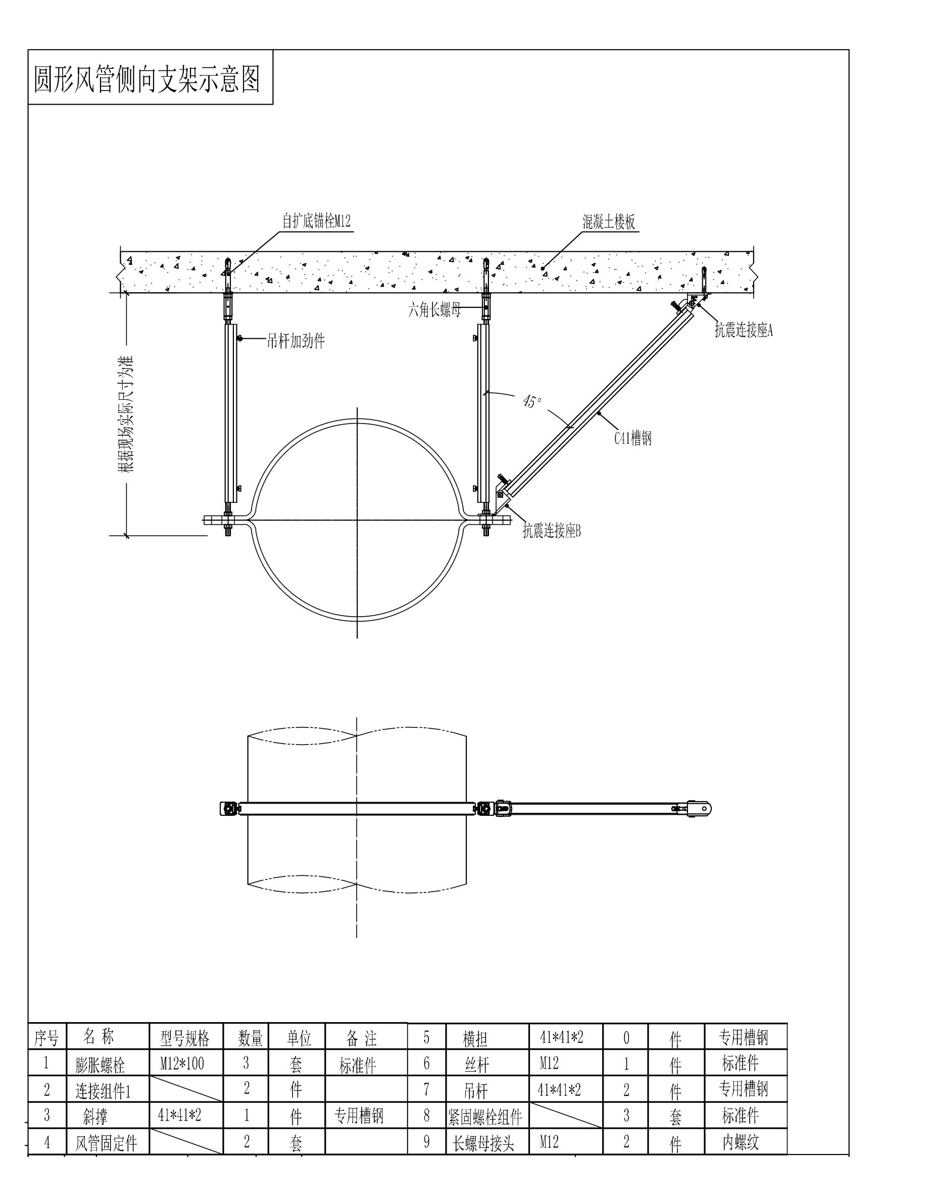 圓形風管側向安裝示意圖